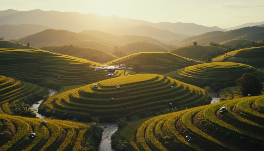 東南アジア農業の自動化技術を解説。ドローン、IoT、ロボティクスによる労働力不足解消と生産性向上の手法を紹介します。 -